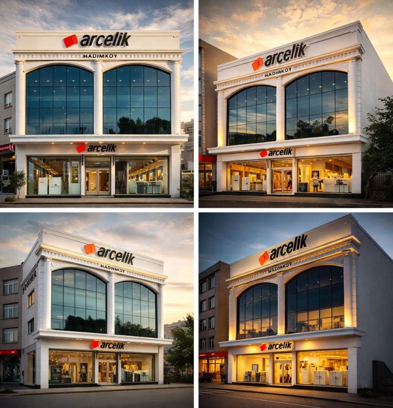 Arçelik Hadımköy Satış Mağazası, İstanbul Arnavutköy ilçesine bağlı Hadımköy bölgesinde konumlanan modern bir beyaz eşya ve elektronik ürün satış alanıdır. Beyaz ve çağdaş dış cephe tasarımı, sade yüzey kullanımıyla markanın kurumsal kimliğini güçlü biçimde yansıtır. Mağaza, ürün sergileme ve müşteri deneyimini destekleyen işlevsel mekân kurgusuyla konforlu bir alışveriş ortamı sunar.