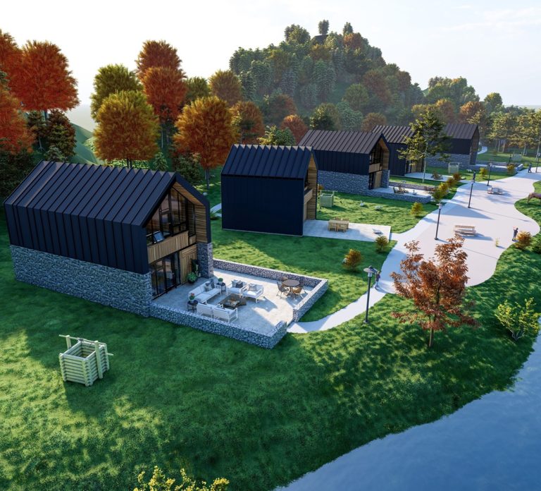 Erzincan’da konumlanan bu bungalov sitesi projesi, doğayla bütünleşen yerleşim planı ve müstakil konut tipolojisiyle sakin bir yaşam kurgusu sunar. Taş zemin katlar ve koyu tonlu metal çatılar, doğal çevreyle uyumlu modern bir mimari dil oluşturur. Yaya yolları, peyzaj düzenlemesi ve ortak açık alanlar sayesinde hem sosyal hem de huzurlu bir konaklama deneyimi hedeflenmiştir.