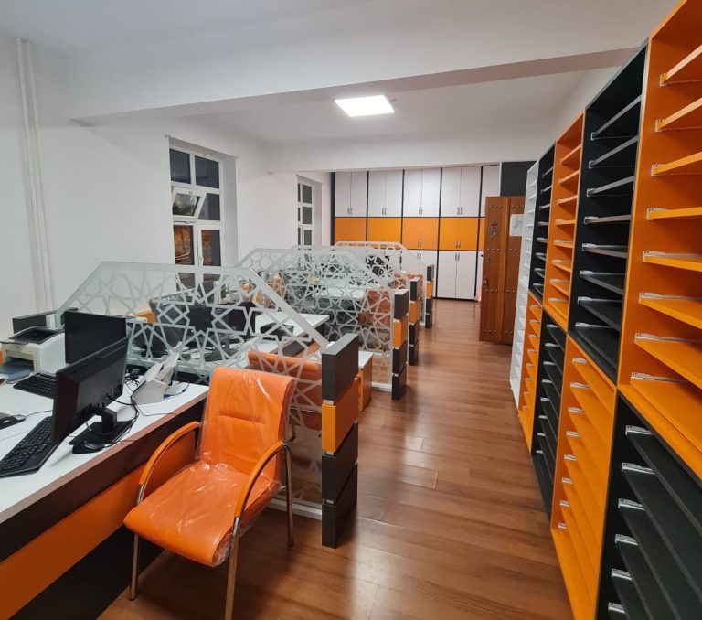 Harem Altın / Kuyumcukent projesinde, markanın güçlü ve güven veren kimliğini yansıtan modern bir ofis tasarımı kurguladık. Mermer dokular, metal detaylar ve cam bölme sistemleriyle prestijli bir atmosfer oluşturduk. Açık çalışma alanları iletişimi desteklerken, yönetici odaları ve toplantı alanları mahremiyet sunar. Özel tasarım depolama çözümleri düzeni güçlendirir. Dengeli aydınlatma kurgusu ise mekâna derinlik ve profesyonel bir ambiyans kazandırarak kurumsal vizyonu vurgular.