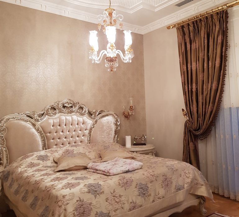 Bebek’te gerçekleştirilen bu iç mekân dekorasyon projesi, klasik lüks anlayışını zarif detaylarla bir araya getirmektedir. Oymalı başlık tasarımına sahip yatak, kristal avize ve altın tonlu aplikler mekâna ihtişamlı bir atmosfer kazandırmıştır. Duvar ve tekstil seçimlerinde tercih edilen yumuşak renk paleti, bütüncül ve dengeli bir görünüm oluşturur. Özenle seçilen mobilya ve aksesuarlar ile estetik süreklilik sağlanmış, konfor ve şıklık bir arada sunulmuştur. Proje, zamansız klasik stilin modern yaşamla uyumlu yorumunu yansıtmaktadır.