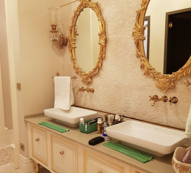 Etiler’de gerçekleştirilen bu iç mekân dekorasyon projesi, klasik ve zarif bir tasarım anlayışını yansıtmaktadır. Desenli duvar kaplamaları, oymalı altın varak ayna çerçevesi ve pirinç armatür detayları mekâna sofistike bir karakter kazandırmıştır. Özel tasarım lavabo dolabı ve bütüncül renk paleti, mekânın sıcak ve davetkâr bir atmosfer oluşturmasını desteklerken, seçilen aksesuarlar ile estetik bütünlük güçlendirilmiştir. Proje, zamansız klasik stilin modern konforla dengelendiği şık bir iç mekân kurgusu sunmaktadır.