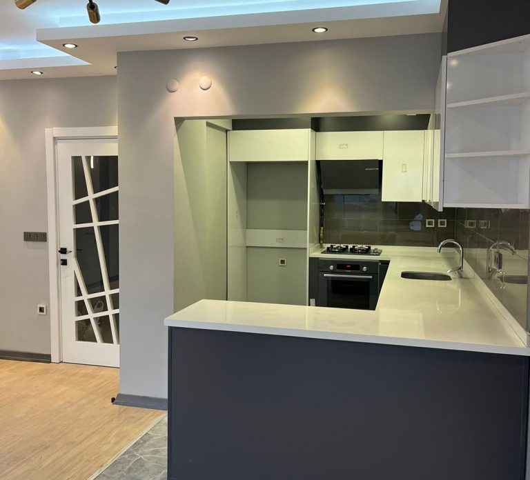 Üsküdar’da gerçekleştirilen bu iç mekân dekorasyon projesi, modern ve sade tasarım anlayışıyla kurgulanmıştır. Açık mutfak planı, yaşam alanıyla bütünleşerek ferah ve işlevsel bir kullanım sunar. Mat yüzeyli dolap kapakları, minimal detaylar ve kontrast…