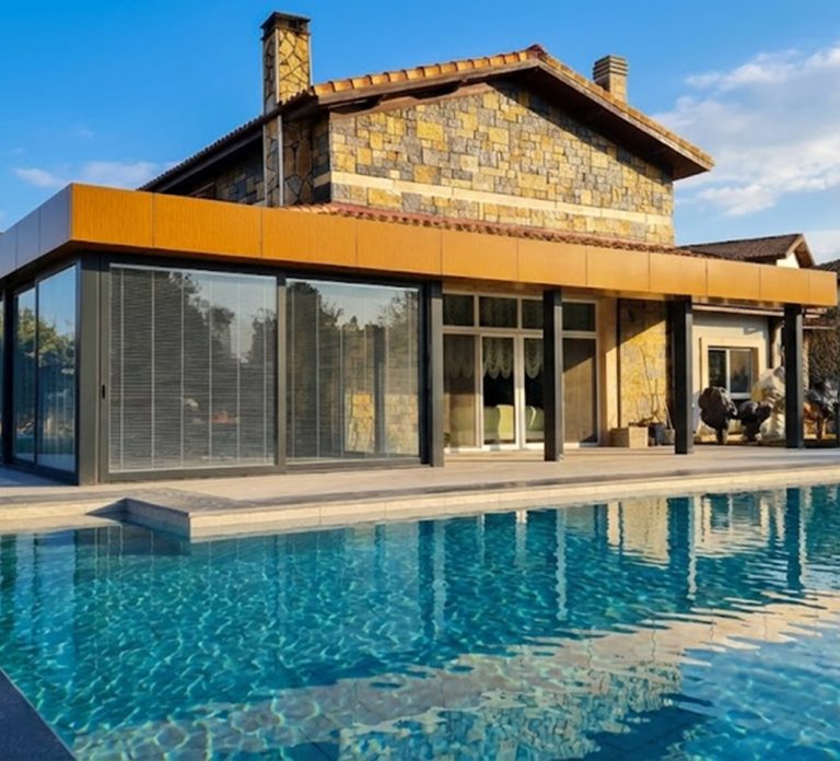 Büyükçekmece Parkvillage yerleşkesinde konumlanan bu villa projesi, taş kaplama cepheler ile modern cam yüzeyleri bir araya getiren dengeli bir mimari yaklaşıma sahiptir. Geleneksel malzeme kullanımı, çağdaş eklentilerle desteklenerek yapıya sıcak ve prestijli bir karakter kazandırılmıştır. Havuzla bütünleşen yaşam alanları, iç ve dış mekân arasındaki ilişkiyi güçlendiren konforlu bir konut deneyimi sunar.